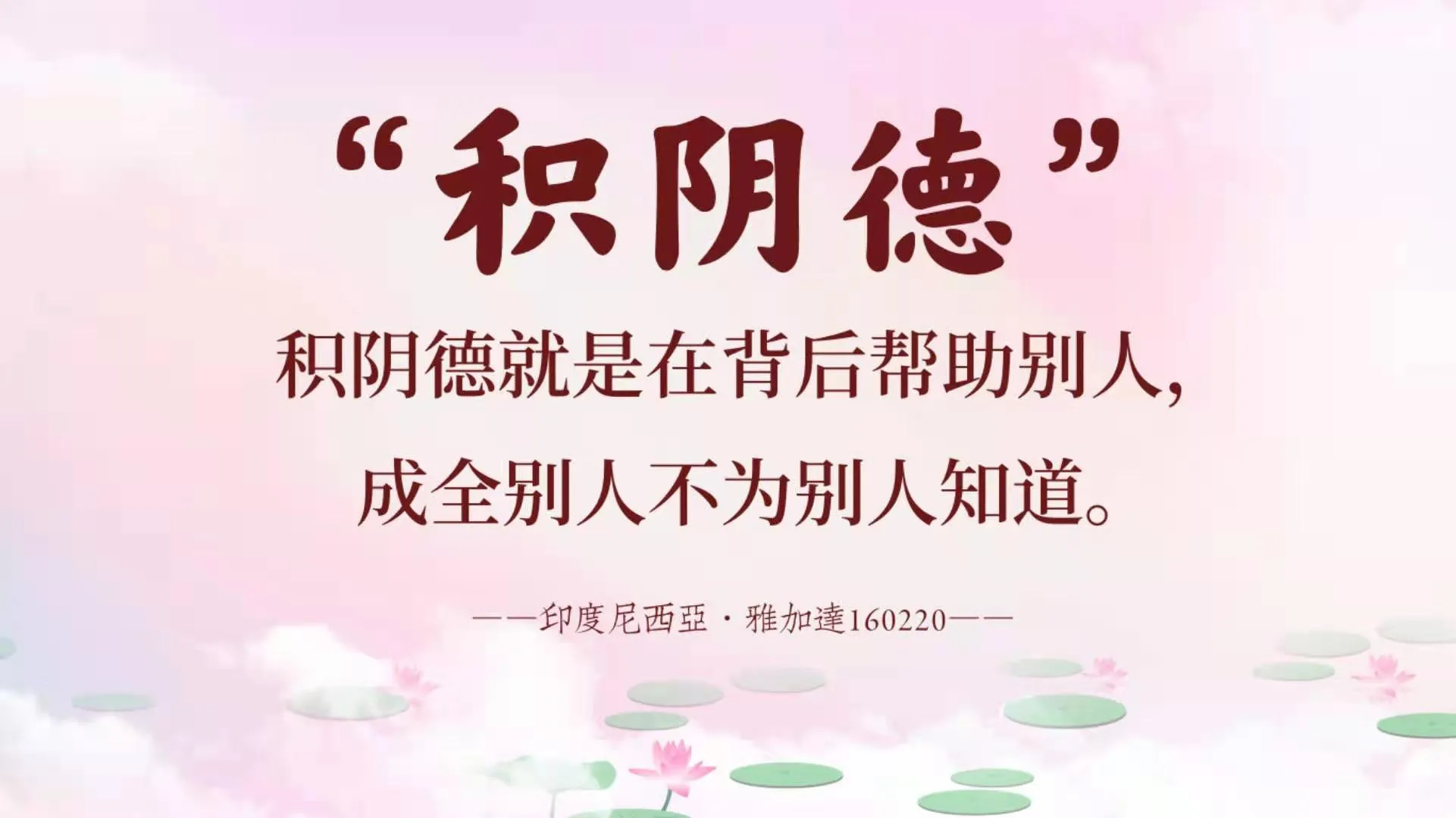 师父想告诉大家……我们经常讲缺阴德,我想告诉大家什么叫缺阴德?阴德到底是什么?行善的人呢,阳善,阳就是太阳的阳,我现在做点善事,让人家知道,叫阳德;如果你做善事,不被别人知道,那么你就是叫阴德,积阴德。阴德实际上不是一句坏话,因为很多人积阴德就是在背后帮助别人,成全别人不为别人知道,这个人就是积阴德。但有些人呢,在别人不知道的情况下,他去骂人家、歧视别人、伤害别人、捉弄别人,那么这就叫缺阴德。